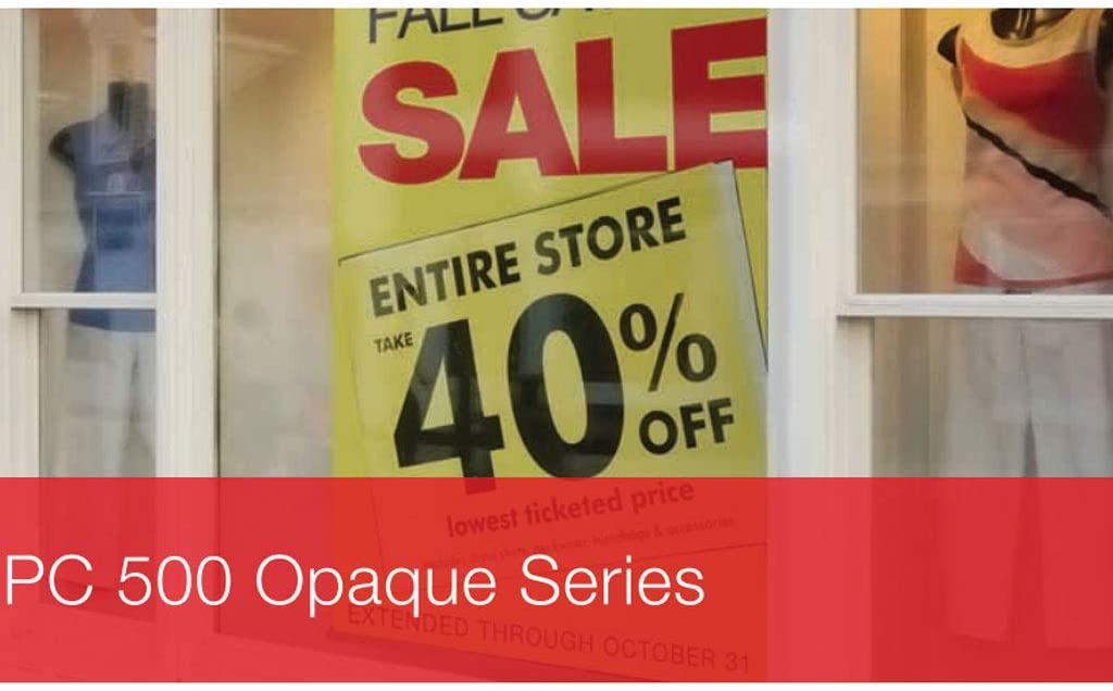 Avery Dennison’s PC 500 Opaque Series is a cost-effective line of high-gloss films for short-term applications with outdoor durability up to 4 years. The promotional calendered series is ideal for the production of attractive and flexible decals. The series is available in matte white for screen printing (with the proper liner). It comes with a permanent adhesive and a removable option.